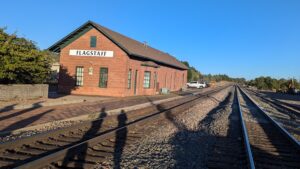 "The Gandy Dancer" is a life sized sculpture honoring the railroad track laborers known colloquially as “Gandy Dancers” (named for the Gandy Company tools they used); Flagstaff