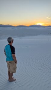 Robby watching sunset at White Sands National Park