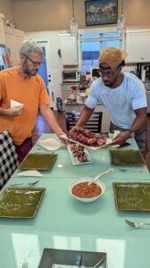 Robby and Cam serving jalapeño poppers and BBQ ribs for dinner...yum!