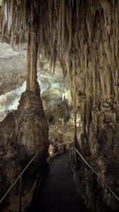 Walking trail beneath stalactites; Carlsbad Caverns