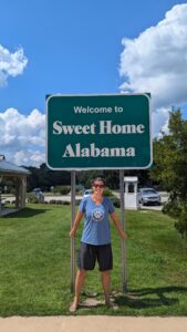Becky at a "Sweet Home Alabama" sign