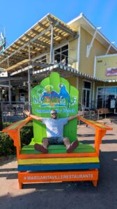 Robby sitting in an oversized Adirondack chair at Panama City Beach